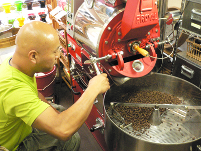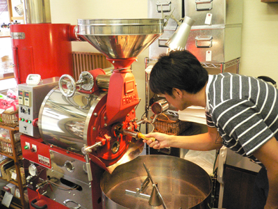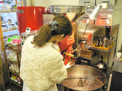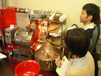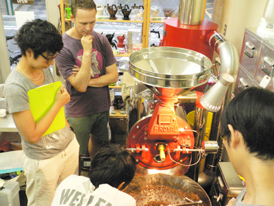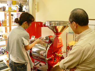 | 直火式の焙煎機を使用して、実際に生豆をローストしていただきます。 焼きあがったコーヒー豆はお持ち帰りいただけます。 |